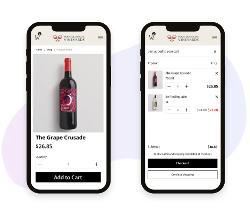 Corksy's powerful e-commerce solution empowers wineries to boost cart conversions and drive more revenue with seamless quick add options, in-cart upsell and club sign-up tools, and user-friendly cart views.