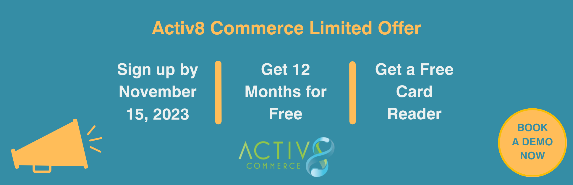 Get Activ8 Commerce for free for 12 months when you sign up by November 15, 2023.