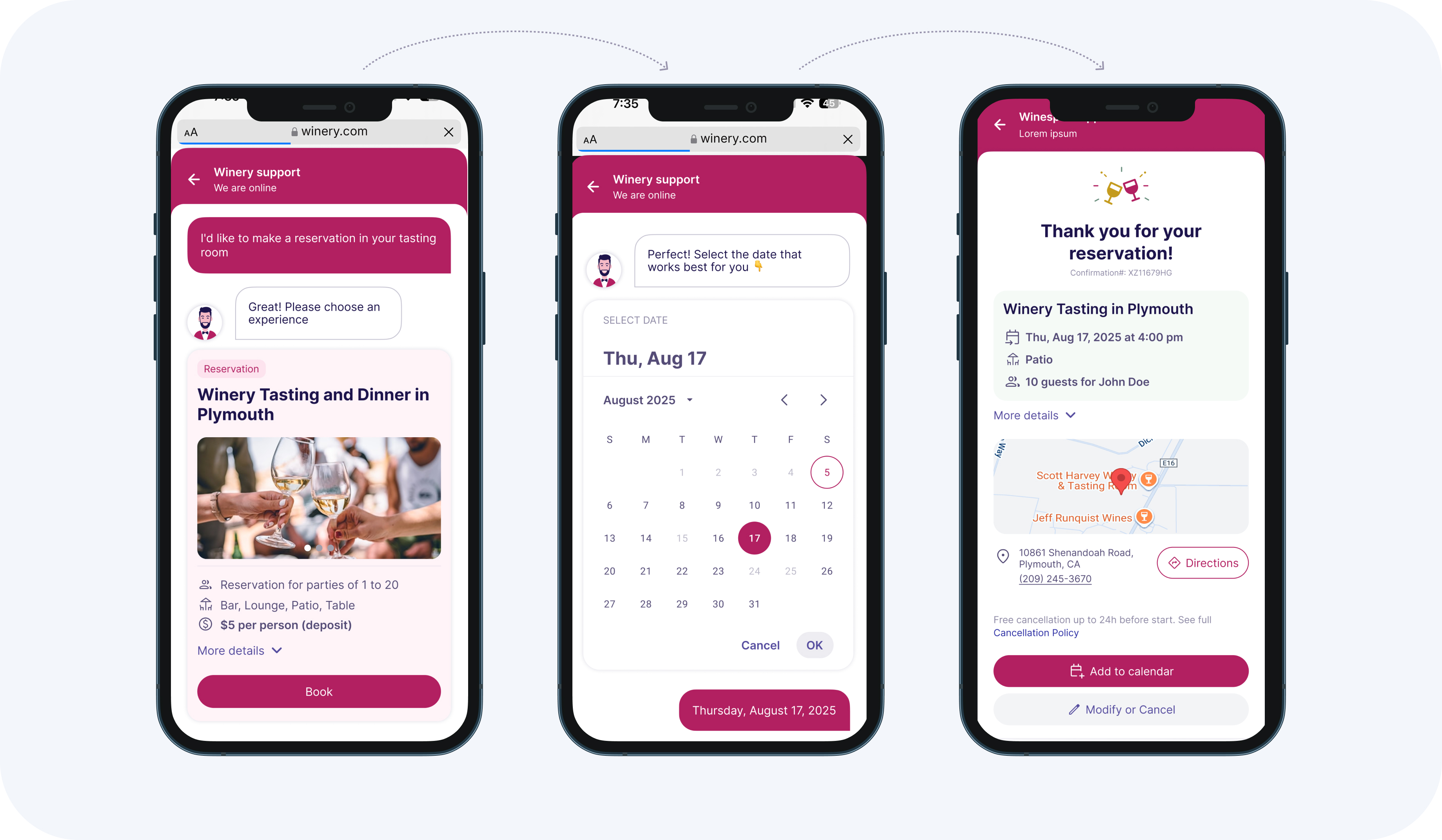 •    Built-in reservation flows on the winery’s own website