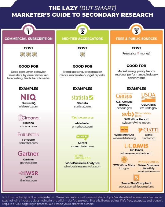 P.S. This probably isn’t a complete list. We’re marketers, not census-takers. If you’ve stumbled across another secret stash of wine industry data hiding in the wild—don’t gatekeep. Share it. Bonus points if it’s free, accurate, and doesn’t require a 400-page login process. We’ll trade you a chart for a chart.