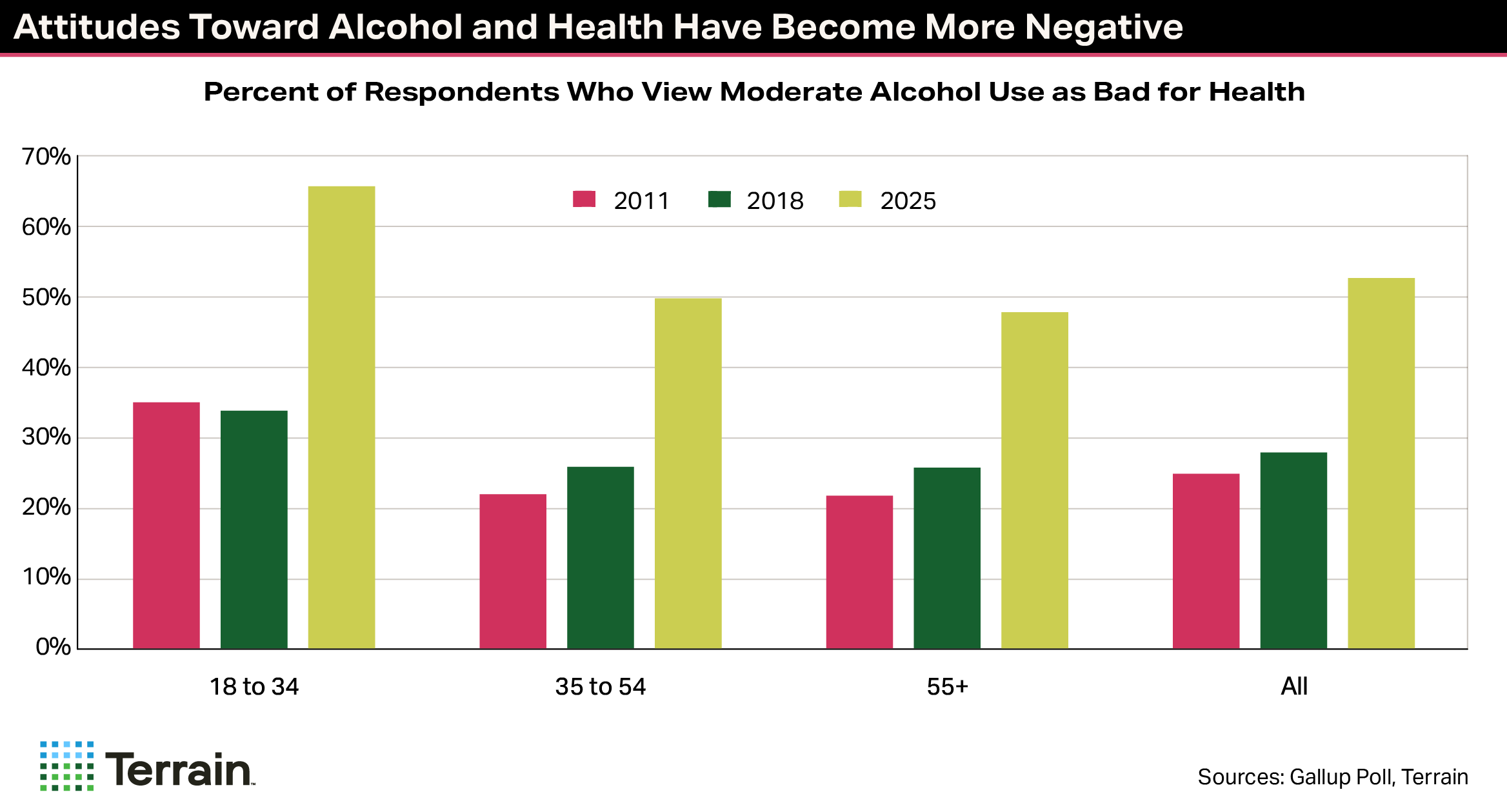 A Gallup poll conducted in 2018 found that 28% of respondents said that moderate drinking is bad for your health. In 2025, that number rose to 53%. Rising health skepticism has almost certainly weighed on alcohol consumption in recent years. A sophisticated and well-funded anti-alcohol movement that has gained influence over the last decade has accelerated the swing. That movement will continue to exert its influence on public opinion and policy going forward.