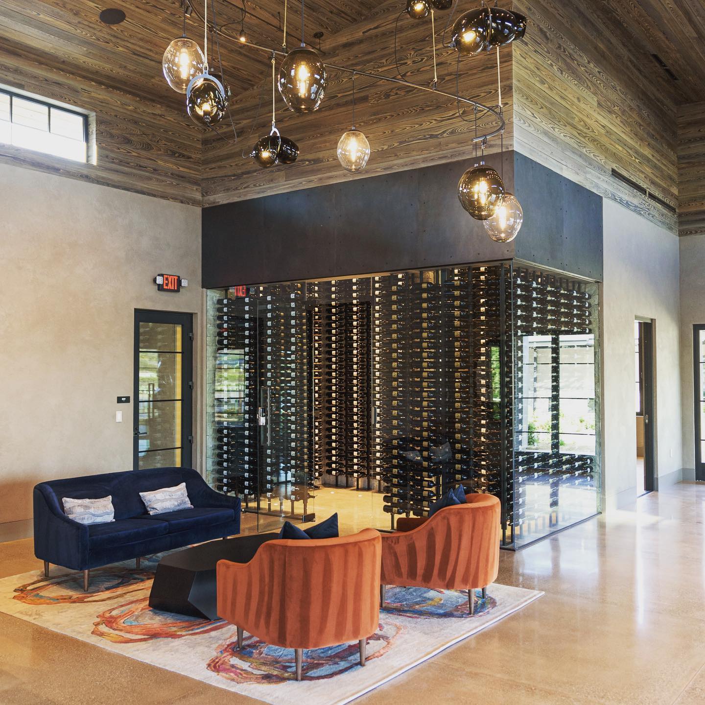 While the building’s exterior is designed with a nod toward the agrarian lifestyle of the valley, the interior showcases a distinctly modern aesthetic, with attention to detail, such as lighting designed to showcase the building’s architectural features and its refined palette of wood and black steel.