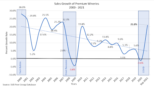 2021 brought a welcome reprieve for premium wineries after working through such a difficult 2020. Of course, sales growth rates of 21% aren't sustainable.